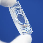 Nach dem franz. Physiker Augustin Jean Fresnel benannter Linsentyp. Da es bei Linsen hauptsächlich auf die Krümmung der Grenzfläche zum umgebenden Medium ankommt, wird bei Fresnellinsen der Linsenkörper in Ringsegmente zerlegt und Volumenmaterial, das nicht zur eigentlichen Krümmung beiträgt, entfernt. Die Dicke der Linse wird also reduziert, was sowohl Volumen und Bauhöhe als auch Gewicht im Verhältnis zur ursprünglichen Volllinse deutlich verringert. Fresnellinsen werden zur Beleuchtung, als Konzentratoren in der Photovoltaik und als abbildende Linsen verwendet. Um optimale Ergebnisse zu erzielen, muss das Profil der Linse auf die Erfordernisse der Anwendung abgestimmt sein. IMOS bietet speziell auf die Beleuchtung abgestimmte Linsen an.