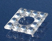 Im Gegensatz zu den Einfachlinsen handelt es sich hierbei um mehrere Linsen, die zu einem Stück zusammengefasst sind. Bei IMOS-Linsen gibt es unzählige Varianten, eine davon ist das Quad-Array (Vierfachlinse).