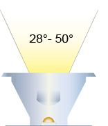 Aber auch die Bauart der LED beeinflusst den Abstrahlwinkel der Linse. Wenn unterschiedliche LEDs auf die gleiche Linse gesetzt werden, ergeben sich meist gering veränderte Abstrahlwinkel.
